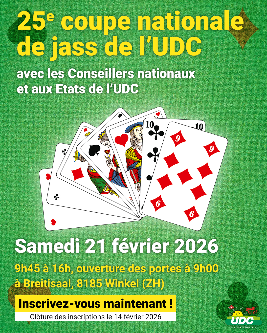 Inscription jusqu’au 10 février 2026 au 031 300 58 58 ou à gs@svp.ch. Vers le formulaire d’inscription