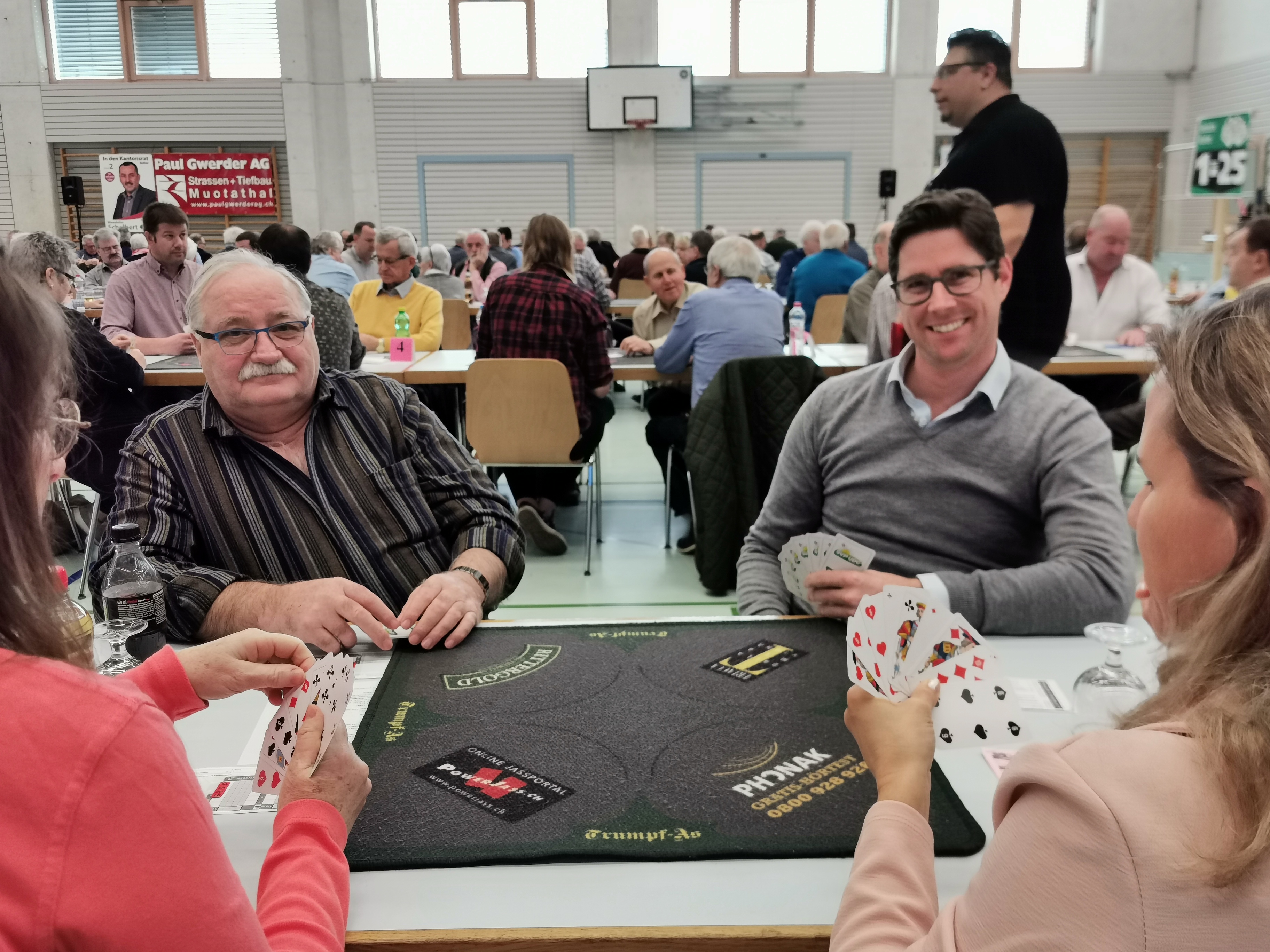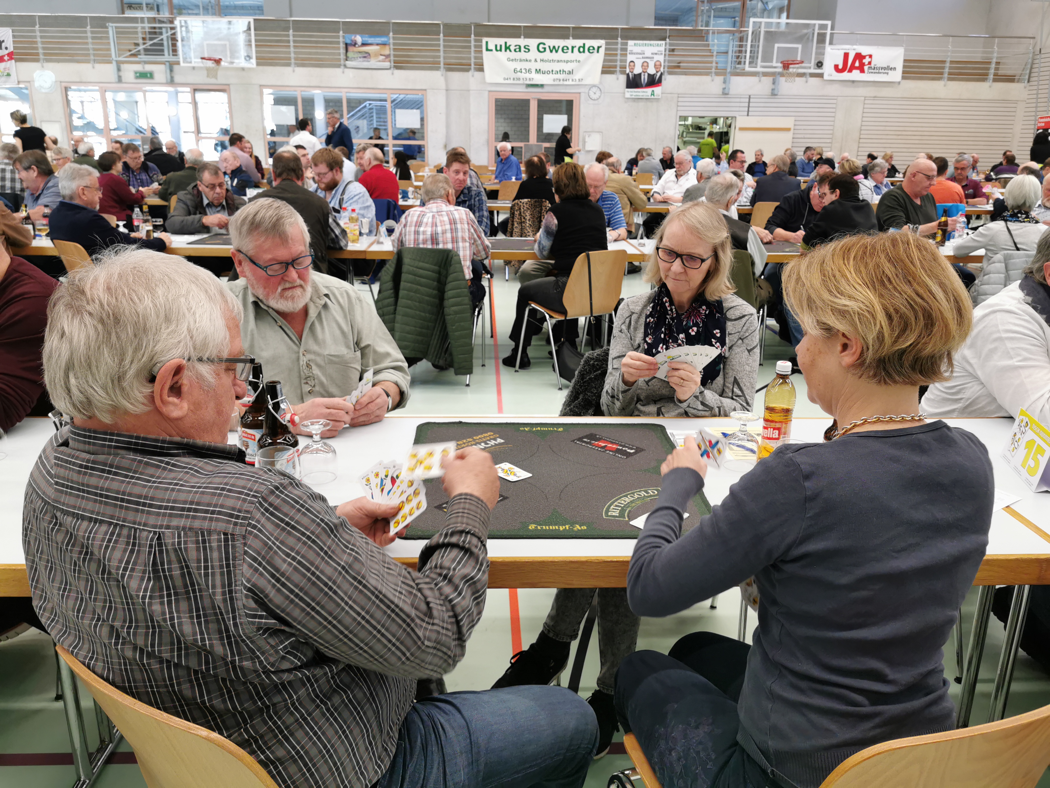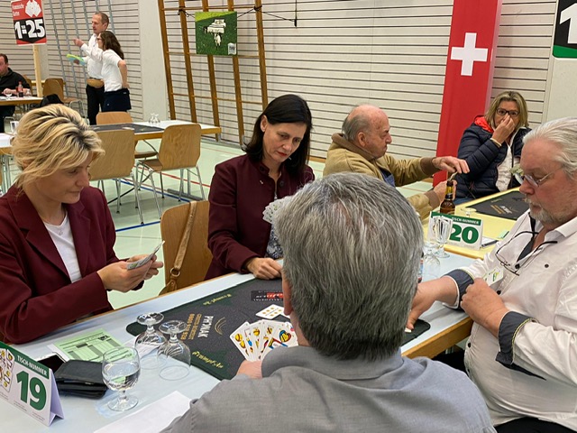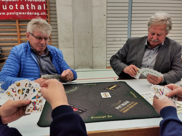 La 20e Coupe nationale UDC de Jass avec des conseillers nationaux et aux Etats UDC et plus de 340 ( ! ) joueurs à Muotathal (SZ) a été une fois de plus un grand succès. Il y a eu beaucoup de vainqueurs au tournoi, mais il n’y en a eu qu’un seul au sommet : Karl Marty d’Uetliburg (SG).