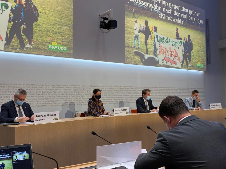 Présentée par Christian Imark lors de la conférence de presse, une analyse des votes du Parti vert’libéral (PVL), vainqueur des élections de 2019, est révélatrice: durant la législature en cours, le PVL a voté au Parlement fédéral avec les Verts et contre l’UDC lors de 129 votes sur 188, alors qu’il n’a voté que 24 fois avec l’UDC contre les Verts. La dénomination de « vert’libéral » est donc mensongère.