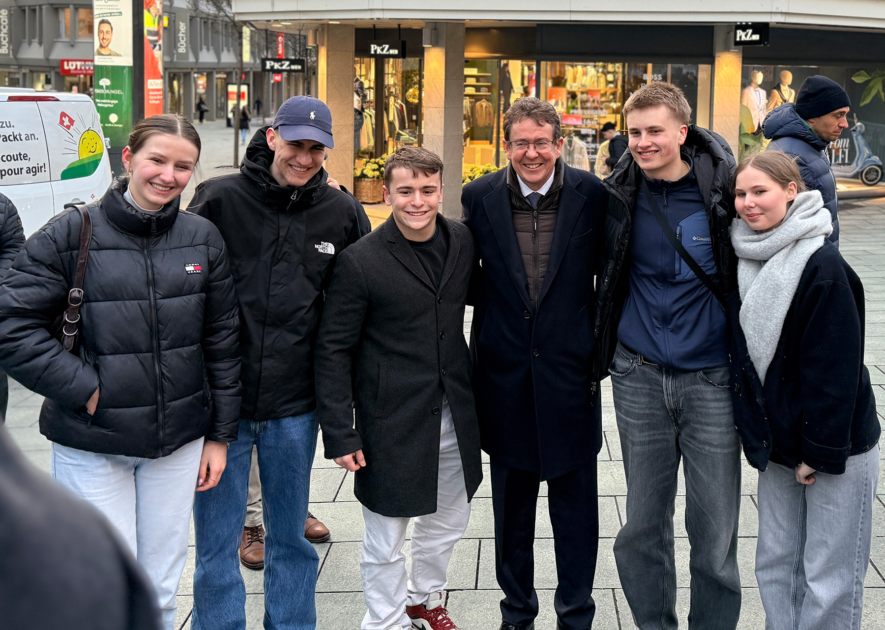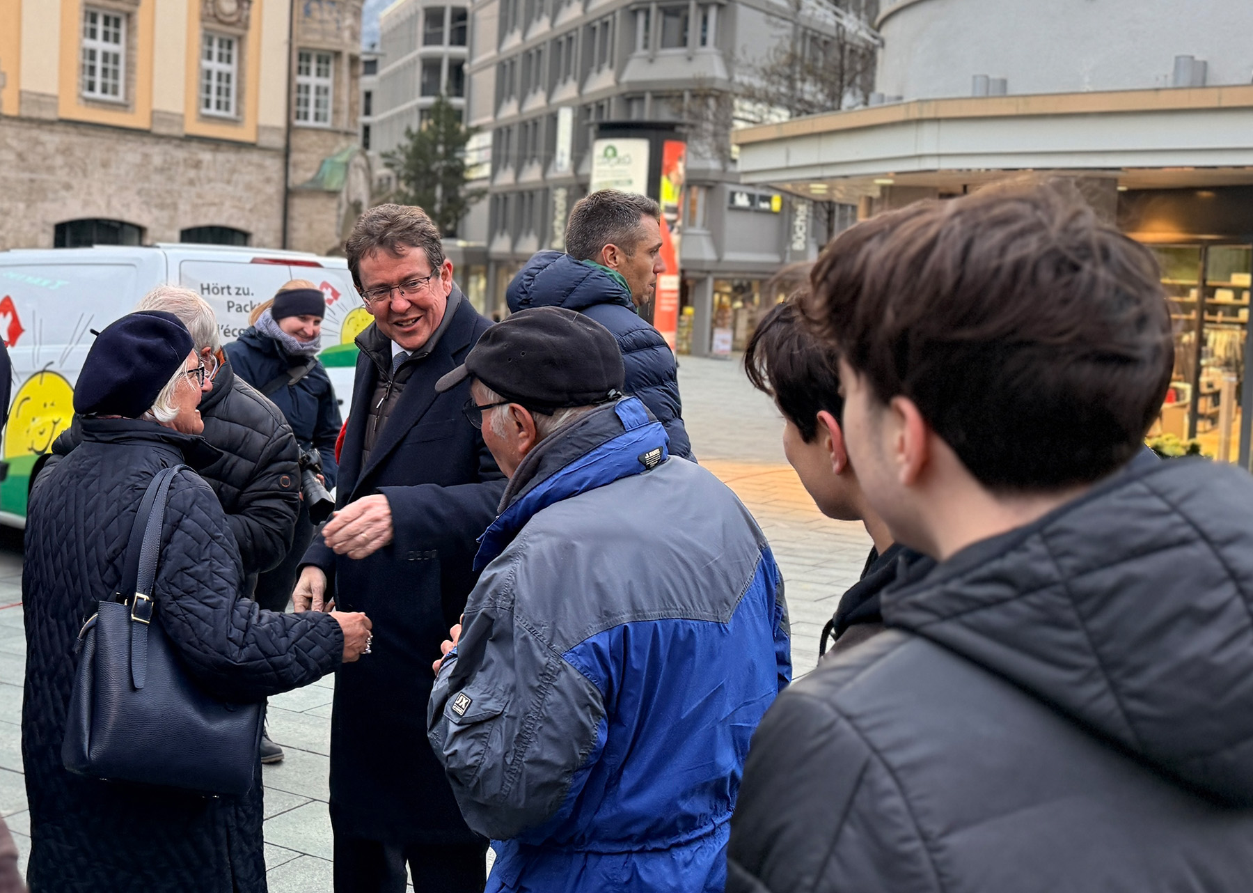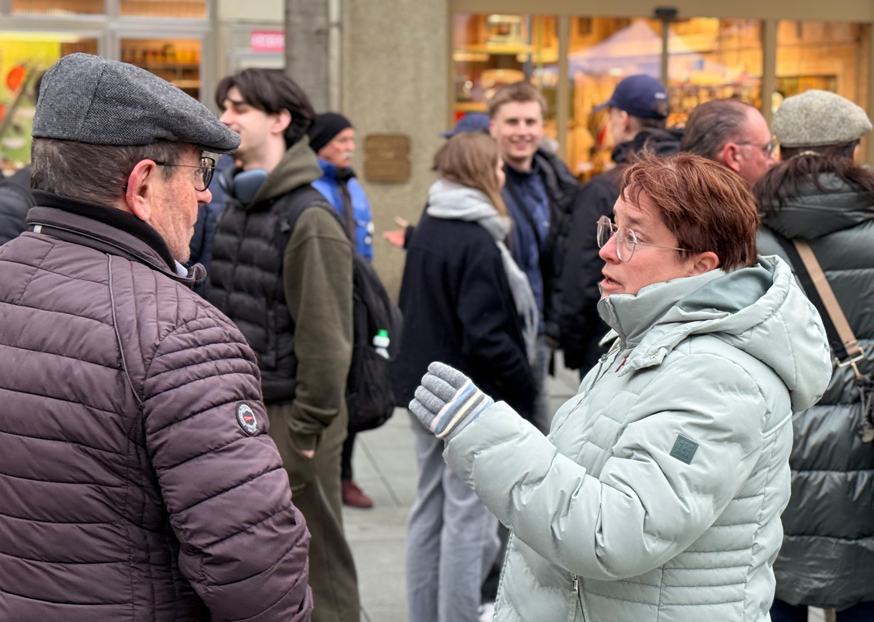 À l’issue de la séance, un « UDC proche de vous » a eu lieu à Coire. Sur l’Alexanderplatz, des élus de l’UDC se sont réunis pour un échange informel avec la population intéressée, parmi lesquels le conseiller fédéral Guy Parmelin. Divers représentants de l’UDC du canton des Grisons étaient également présents pour répondre aux questions, entre autres la vice-présidente Magdalena Martullo-Blocher, le conseiller national Roman Hug et la candidate au Conseil d’État Valérie Favre Accola.