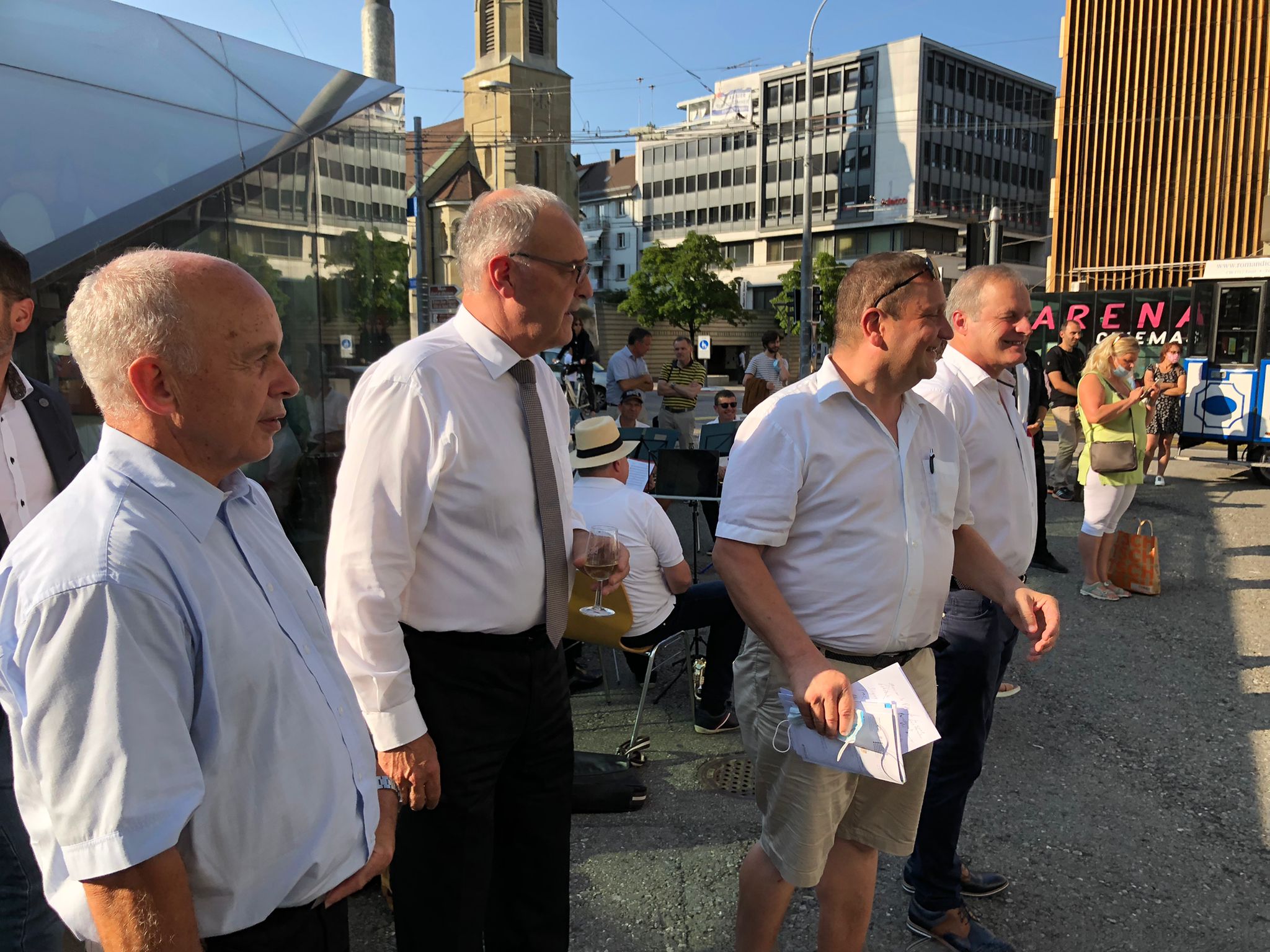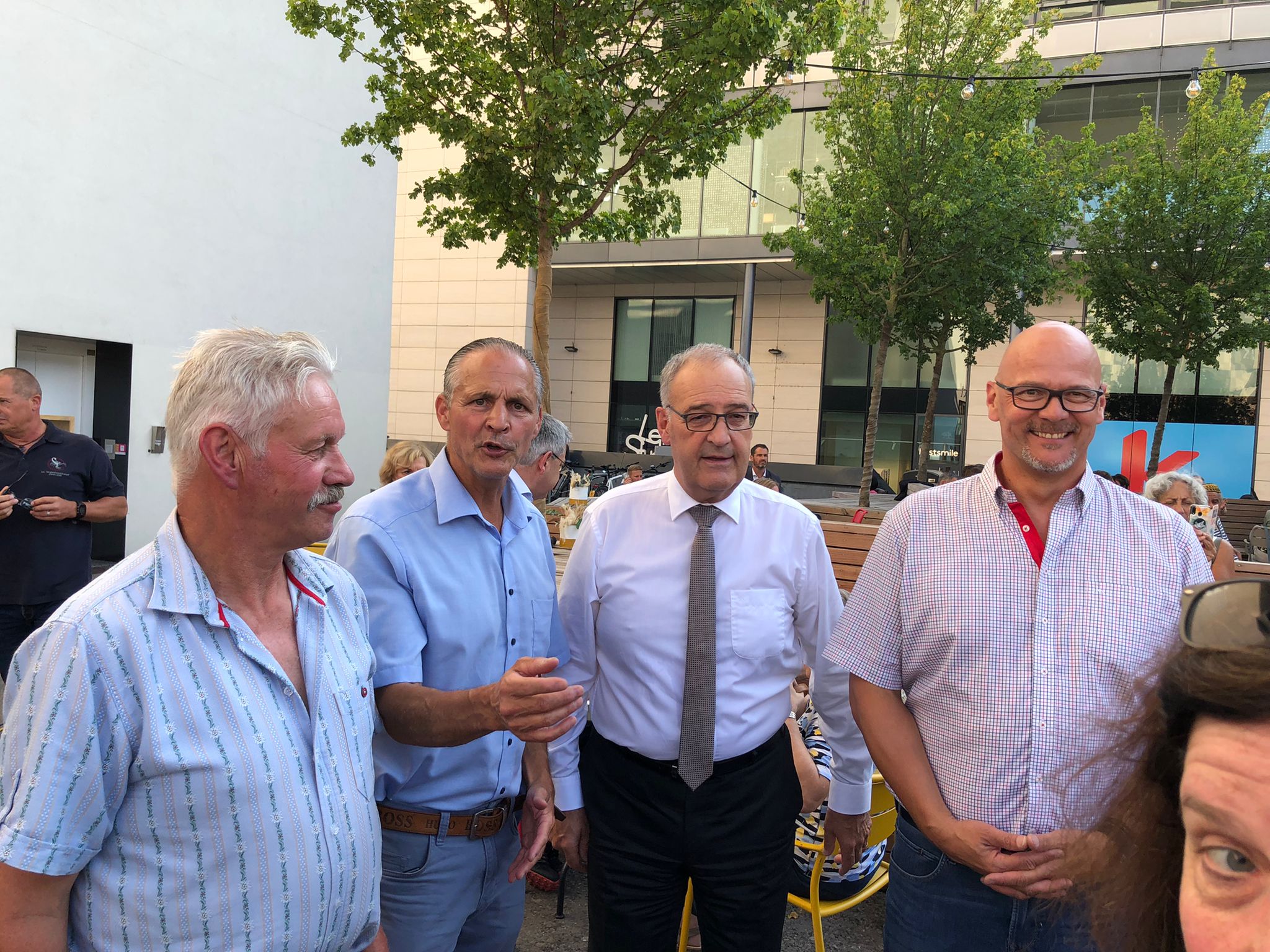 À la suite de sa séance, le comité du parti a rencontré la population locale lors d’un « UDC proche de vous » à la place Jean Tinguely à Fribourg par un temps estival.