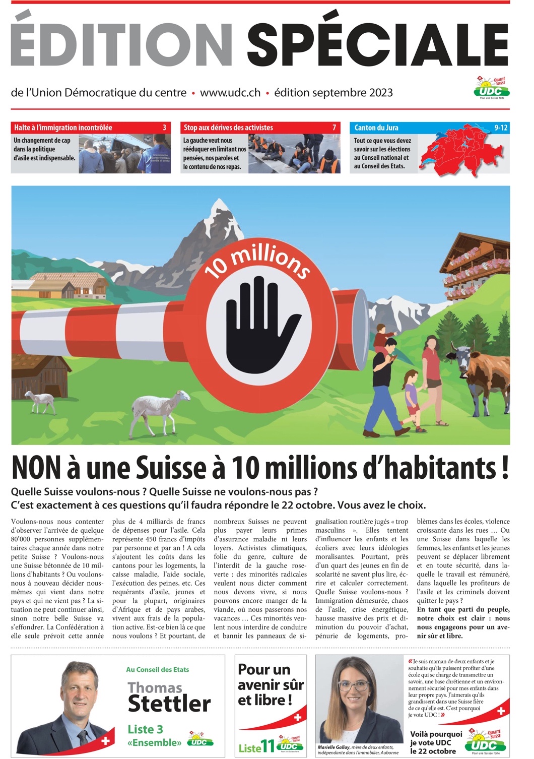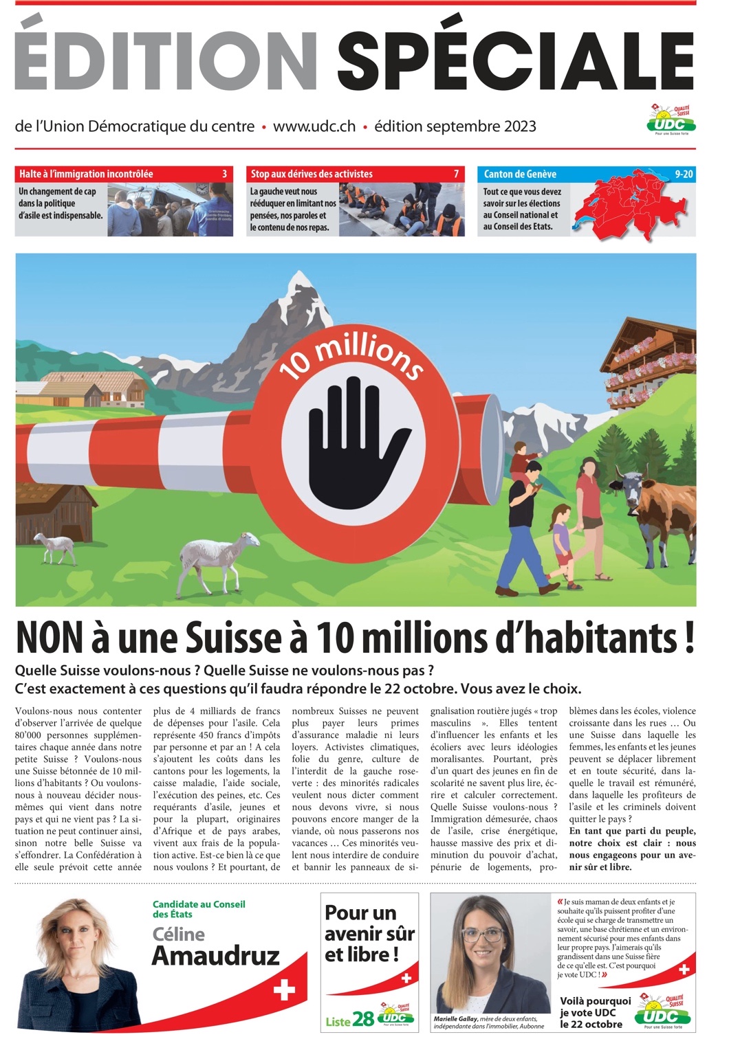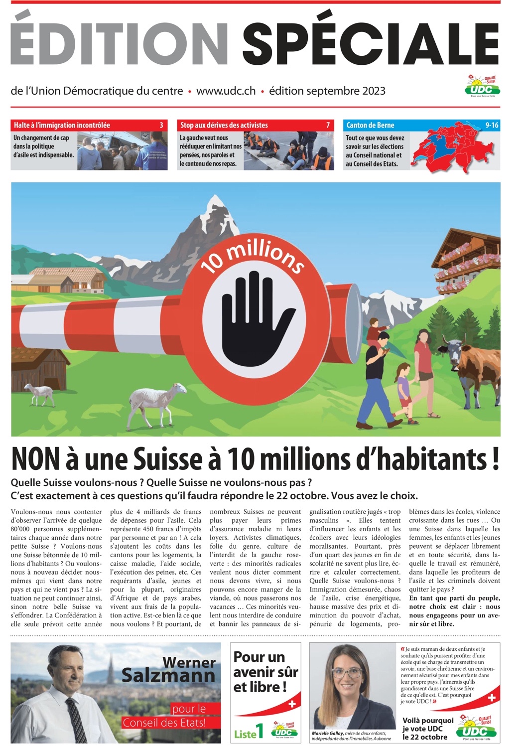 Edition spéciale septembre 2023: Non à une Suisse à 10 millions d’habitants