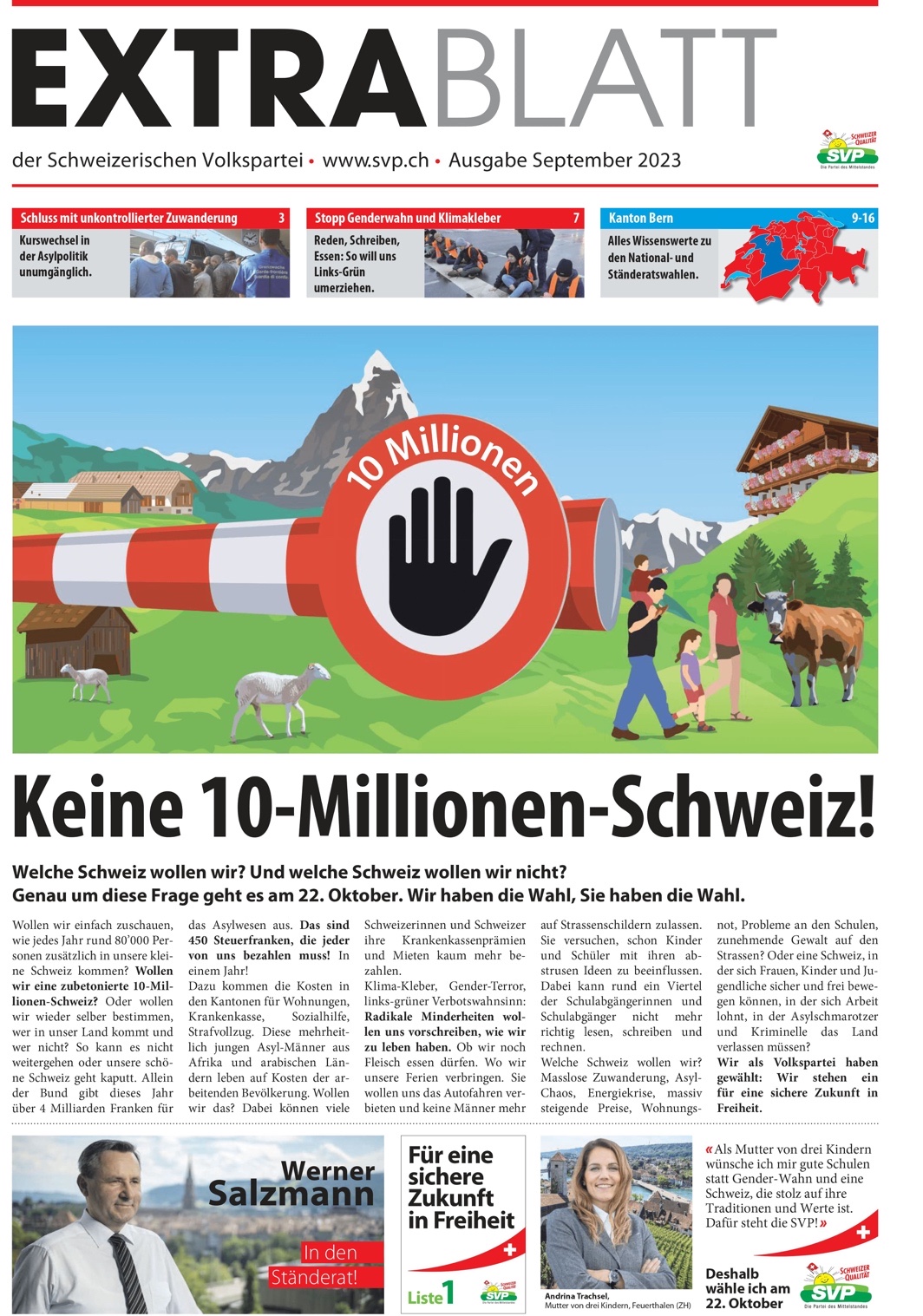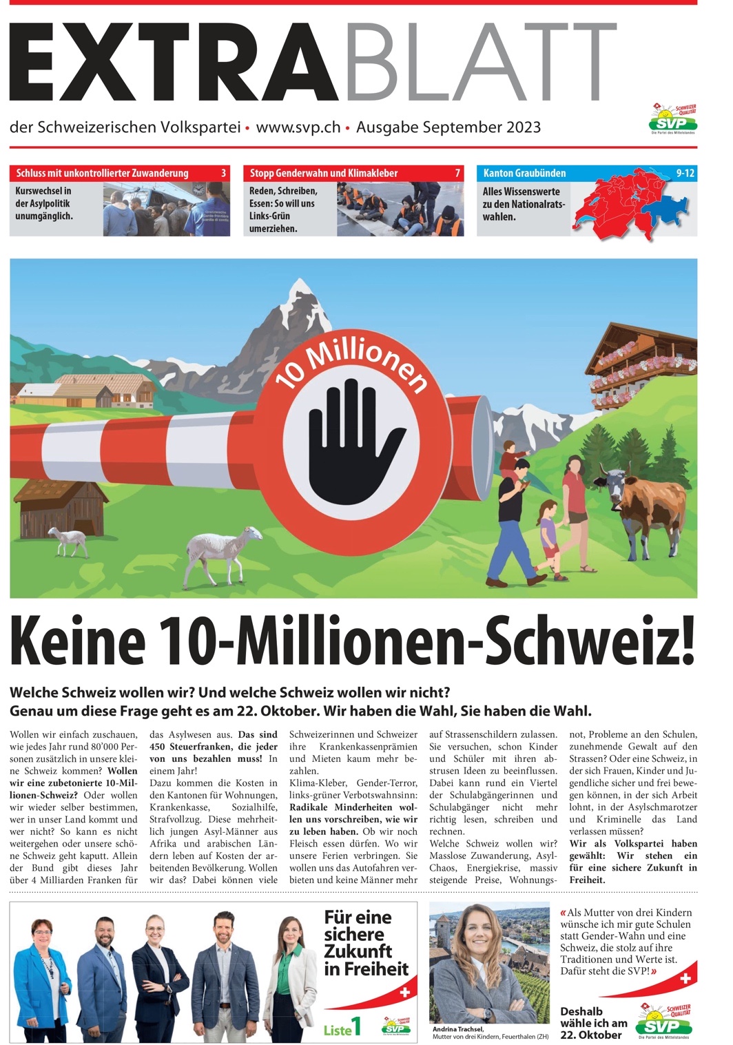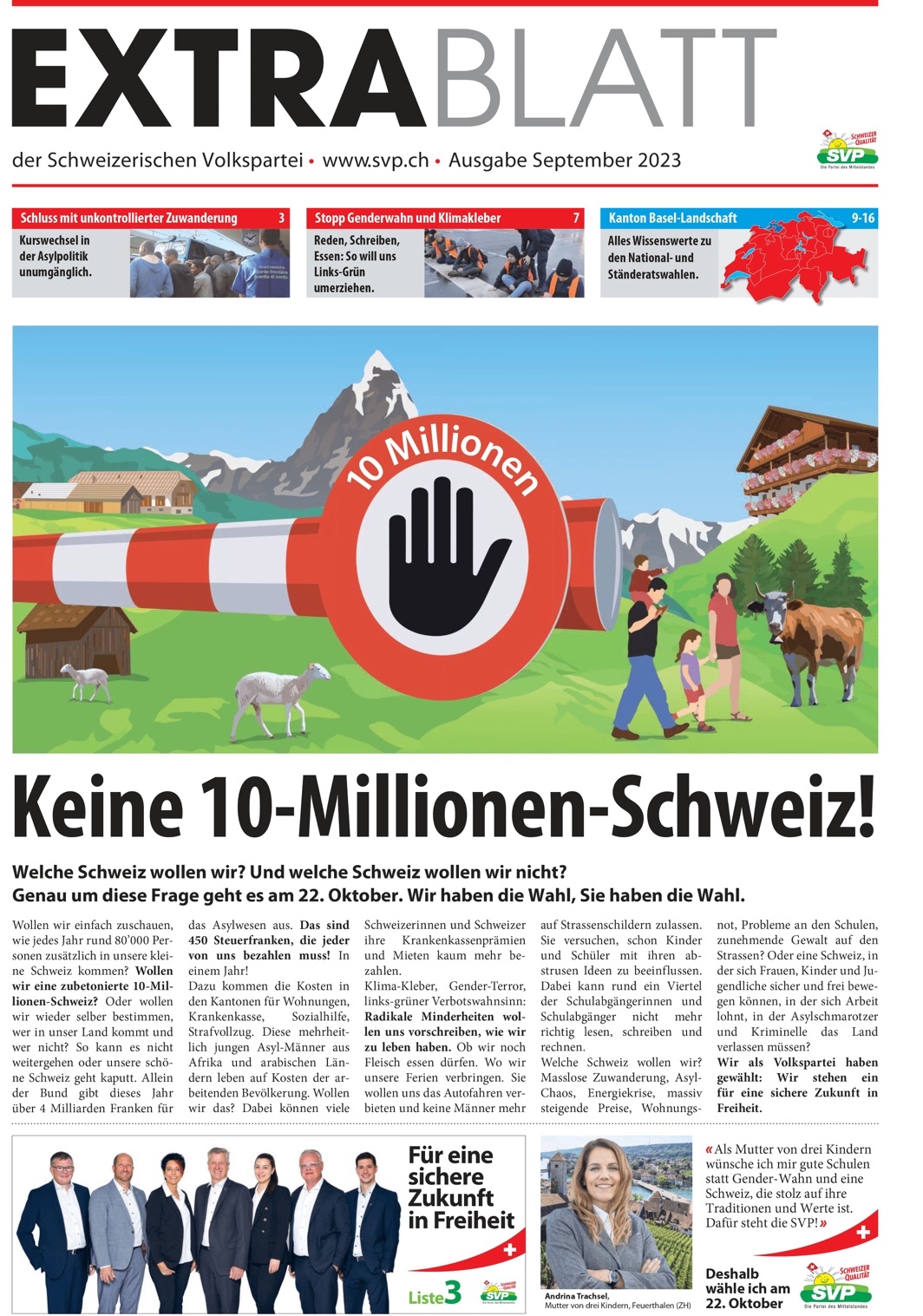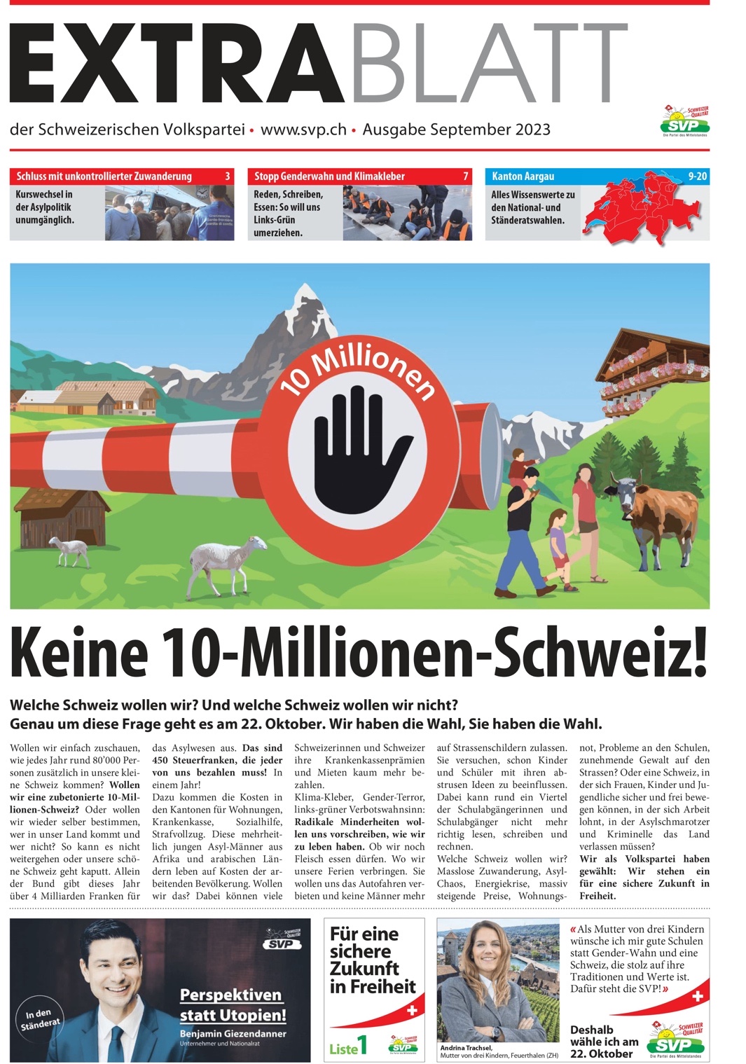 Edition spéciale septembre 2023: Non à une Suisse à 10 millions d’habitants