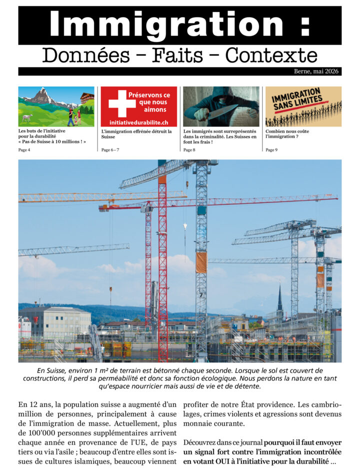 Découvrez dans ce journal pourquoi il faut envoyer un signal fort contre l’immigration incontrôlée en votant OUI à l’initiative pour la durabilité.