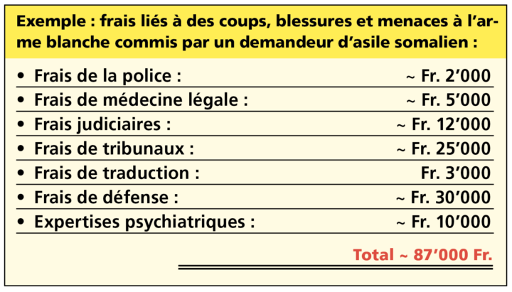 Qui aurait cru que nous devrions chercher à nous protéger des « personnes en quête de protection » dans notre propre pays ? La population suisse paie cette politique au prix de sa sécurité et à grands frais ; la Confédération dépense désormais 4 milliards par an dans le domaine de l’asile, auxquels s’ajoutent les coûts liés à la police, aux poursuites pénales et à l’exécution des peines.